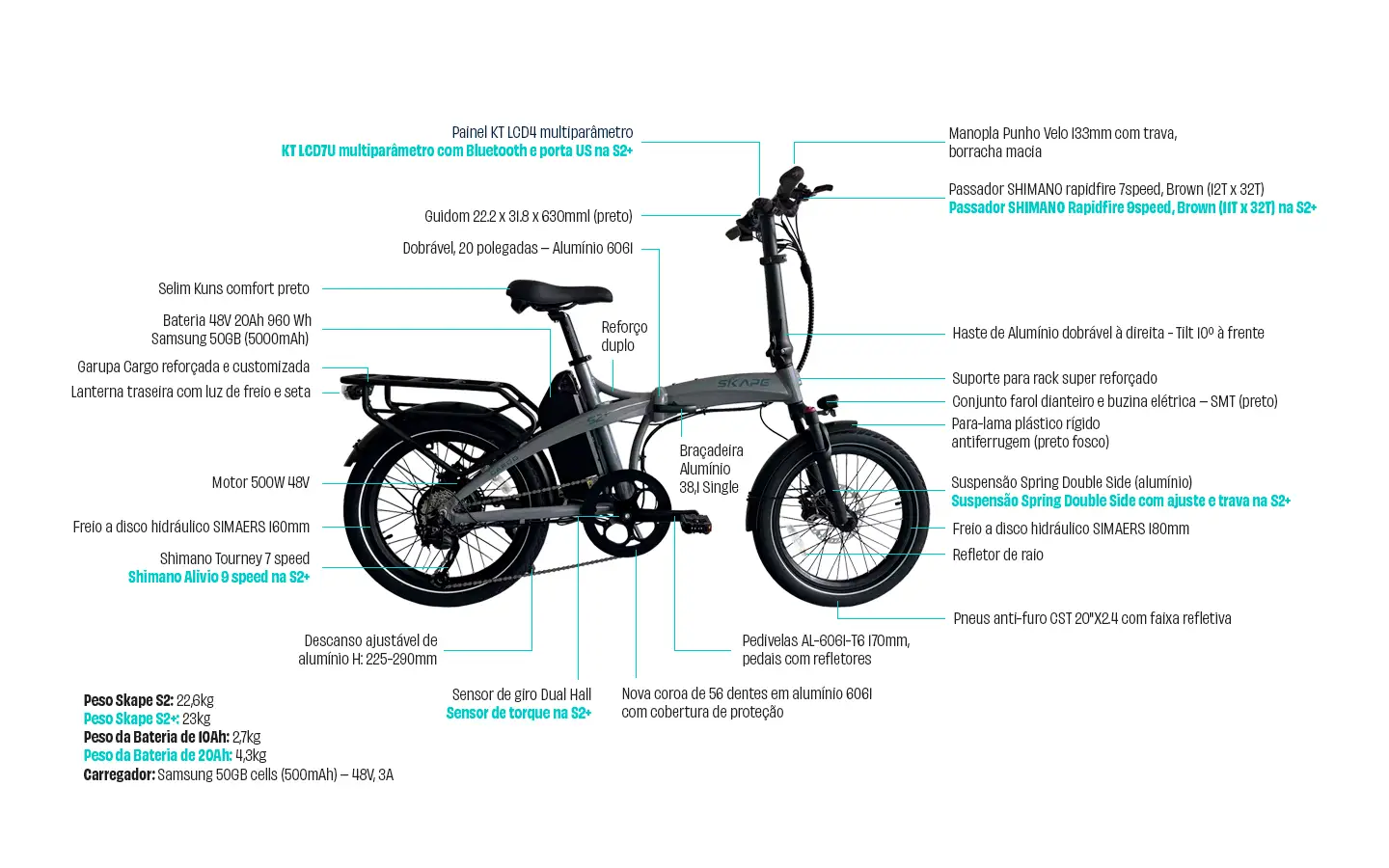 Autonomia: 70km a 140km (dependendo da bateria, carga, modo de condução, terreno)